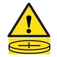 Packaging label - Warning: Contains coin battery (icon at least width: 7mm and height: 9mm)