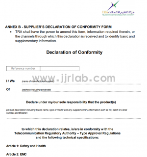 The Telecommunications RegULatory Authority (TRA) in the United Arab Emirates (UAE) is the regulatory body overseeing radio and telecommunications communications. According to TRA regulations, all wireless devices destined for the UAE market must obtain a model approval.